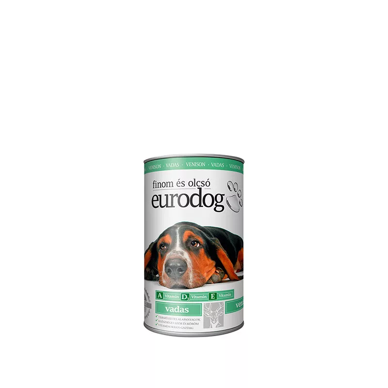 EURO DOG KONZERVA SA MESOM DIVLJAČI je potpuna hrana za odrasle pse koja sadrži divljač kao glavni izvor mesa. Ovaj proizvod pruža biološki potpunu ishranu za vaše četvoronožne ljubimce, doprinoseći njihovom zdravlju i sreći.