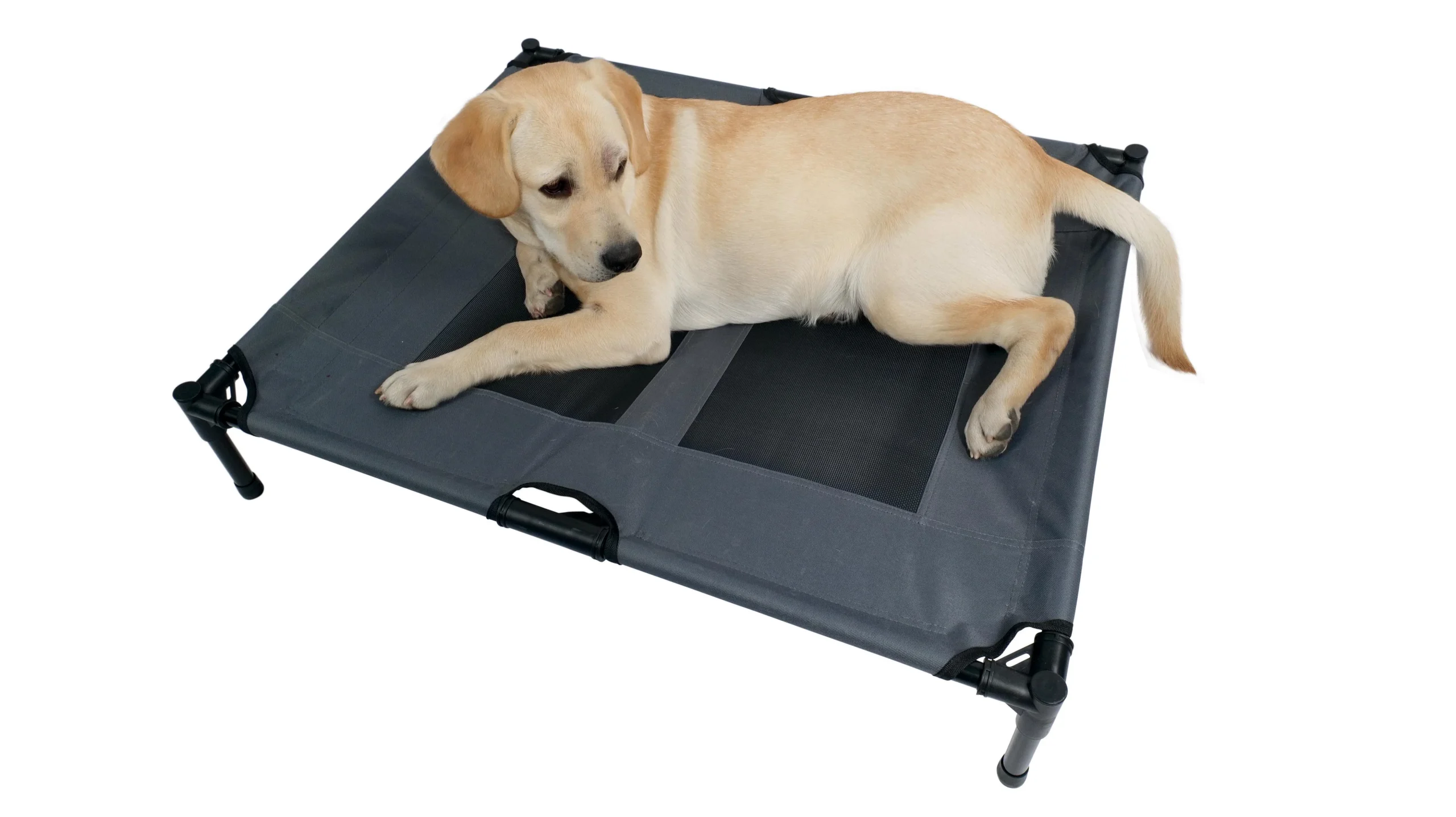 Povišeni krevet za pse pomaže ljubimcima da ostanu hladni tokom toplih proljetnih i ljetnih mjeseci omogućavajući cirkulaciju zraka i držeći ih podalje od mokre/hladne podloge. Podiženi krevet za ljubimce s prozračnim mrežastim centrom odličan je za unutrašnju i vanjsku upotrebu. Gumeni nogari protiv klizanja pružaju zaštitu za podove unutar kuće, a mrežasti centar otporan na vodu odbija vlagu i neugodne mirise. Ovaj krevet za ljubimce je izrađen od čvrstog materijala, jednostavan za uklanjanje i čišćenje, idealan za korištenje kod kuće, u vrtu ili na putovanjima.